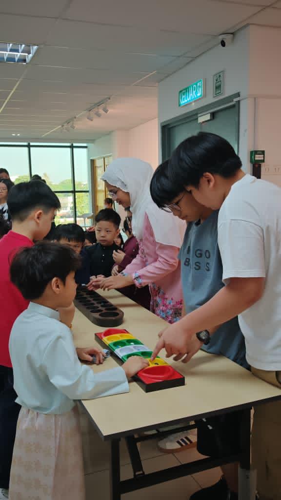 The fun didn’t stop there! The school grounds buzzed with activity as students participated in traditional mini games such as Batu Seremban, Bulu Ayam, Congkak, Guli, and the ever-popular Chopstick Orange challenge. These games sparked friendly competition, teamwork, and countless smiles all around.